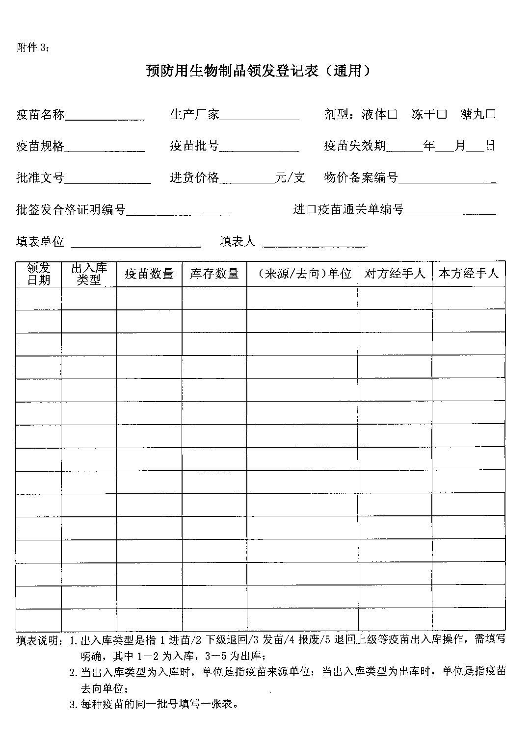 3.预防用生物制品领发登记表