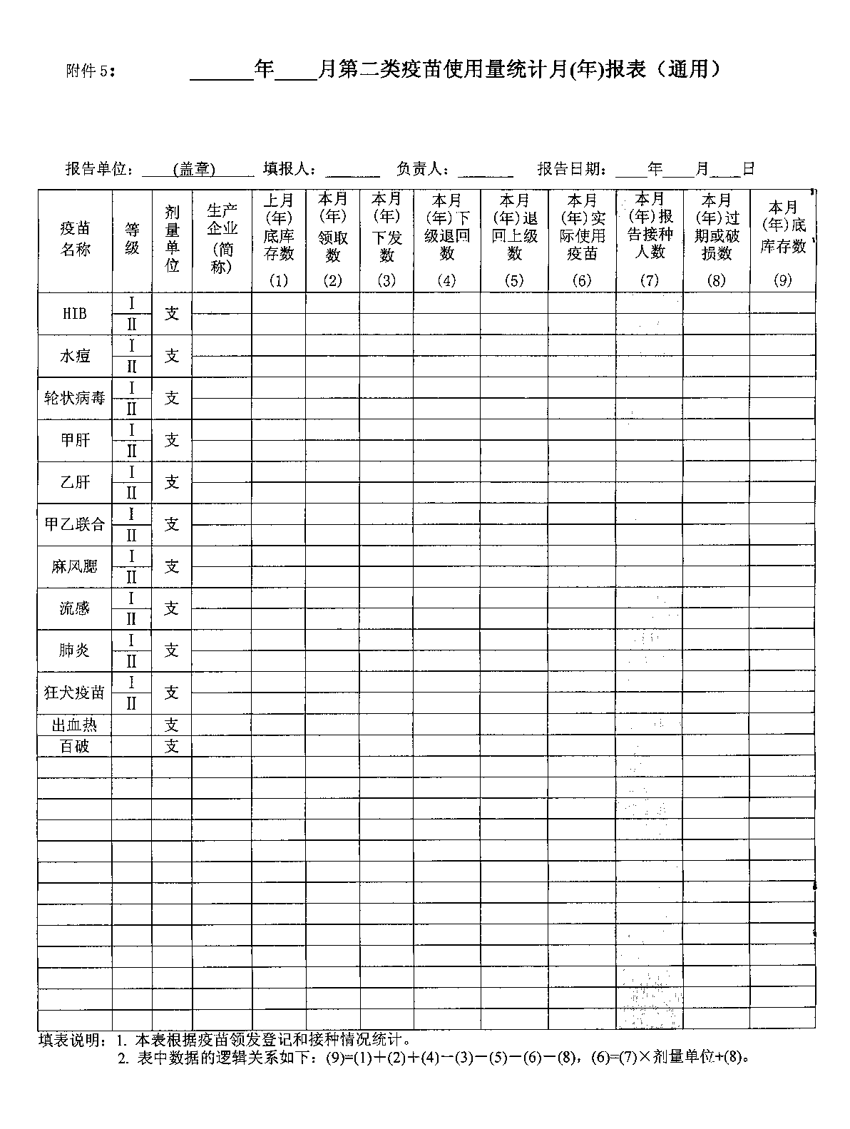 5. 年 月第二类使用量统计月(年)报表(通用)