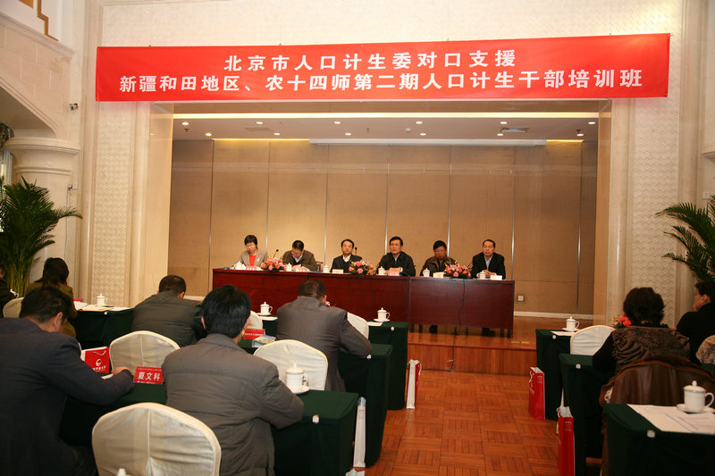 为贯彻落实十八大报告中提出的对口支援民族地区、边疆地区的有关精神,2012年12月4日,北京市人口计生委在京举办第二期“新疆和田地区、农十四师人口计生干部培训班”。来自新疆和田地区、兵团农十四师人口计生部门的干部共40人参加了开班式并将接受为期两周的行政管理培训。